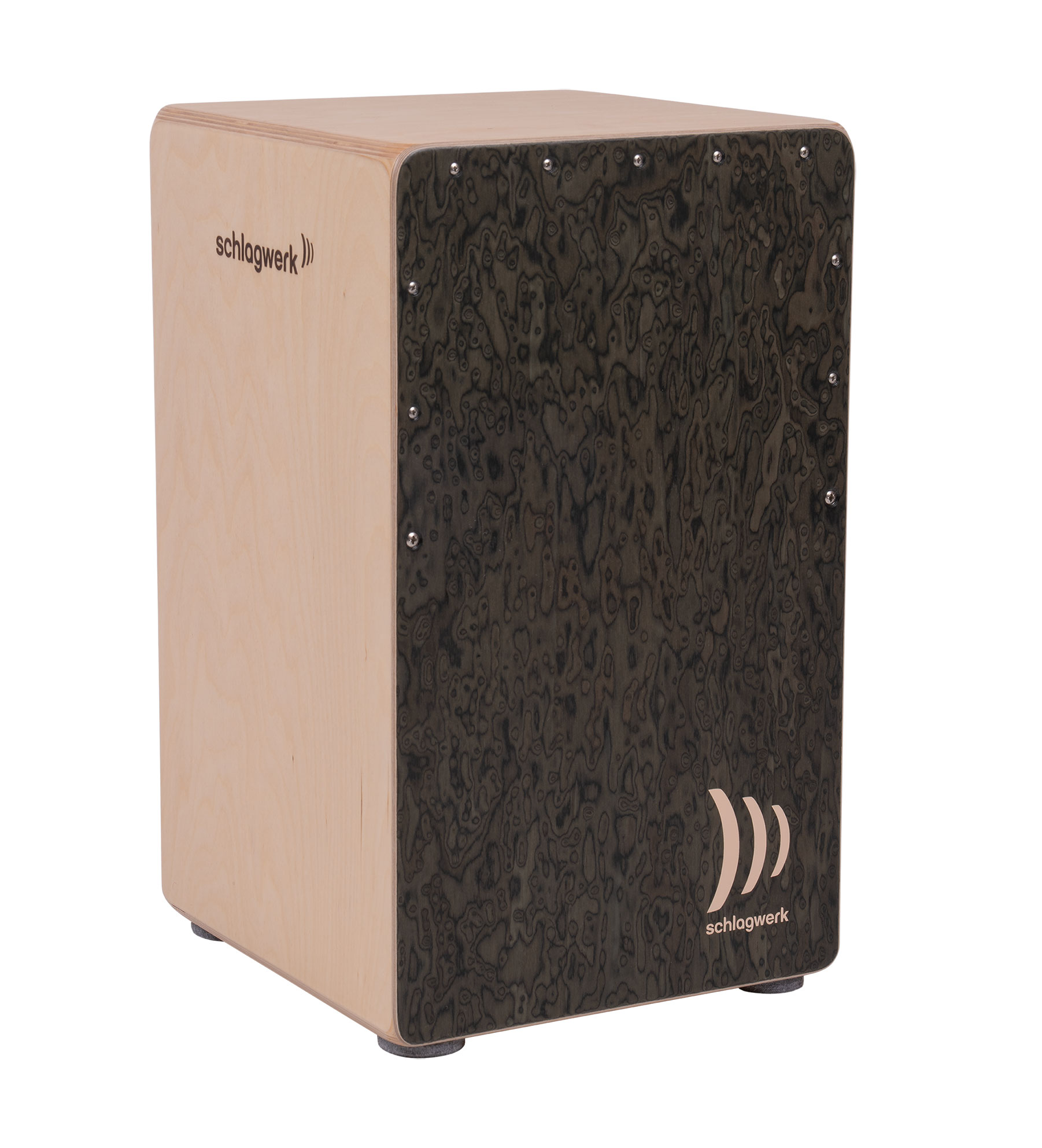 Gebaut wird das La Perù EVO Wurzel aus massiver, gebeizter Erle im Korpus, Buche Rückwand und Designfurnier Schlagfläche. Die Schlagfläche ist halbverleimt und verschraubt, für den typischen La Perù Bass. Während der Erle Korpus die kontrollierten Bässe verstärkt, erzeugen die 2x4 Snare-Saiten, die aufgefächert auf der Schlagflächenrückseite anliegen, die satten und ultrapräzisen Snare-Sounds. Alle vier Snare Saitenstränge sind separat justierbar. Diese Features zusammen machen das optisch und technisch beeindruckende La Perù EVO Wurzel Cajon zu einem äußerst vielseitigen Instrument, für jeden Musikstil geeignet.