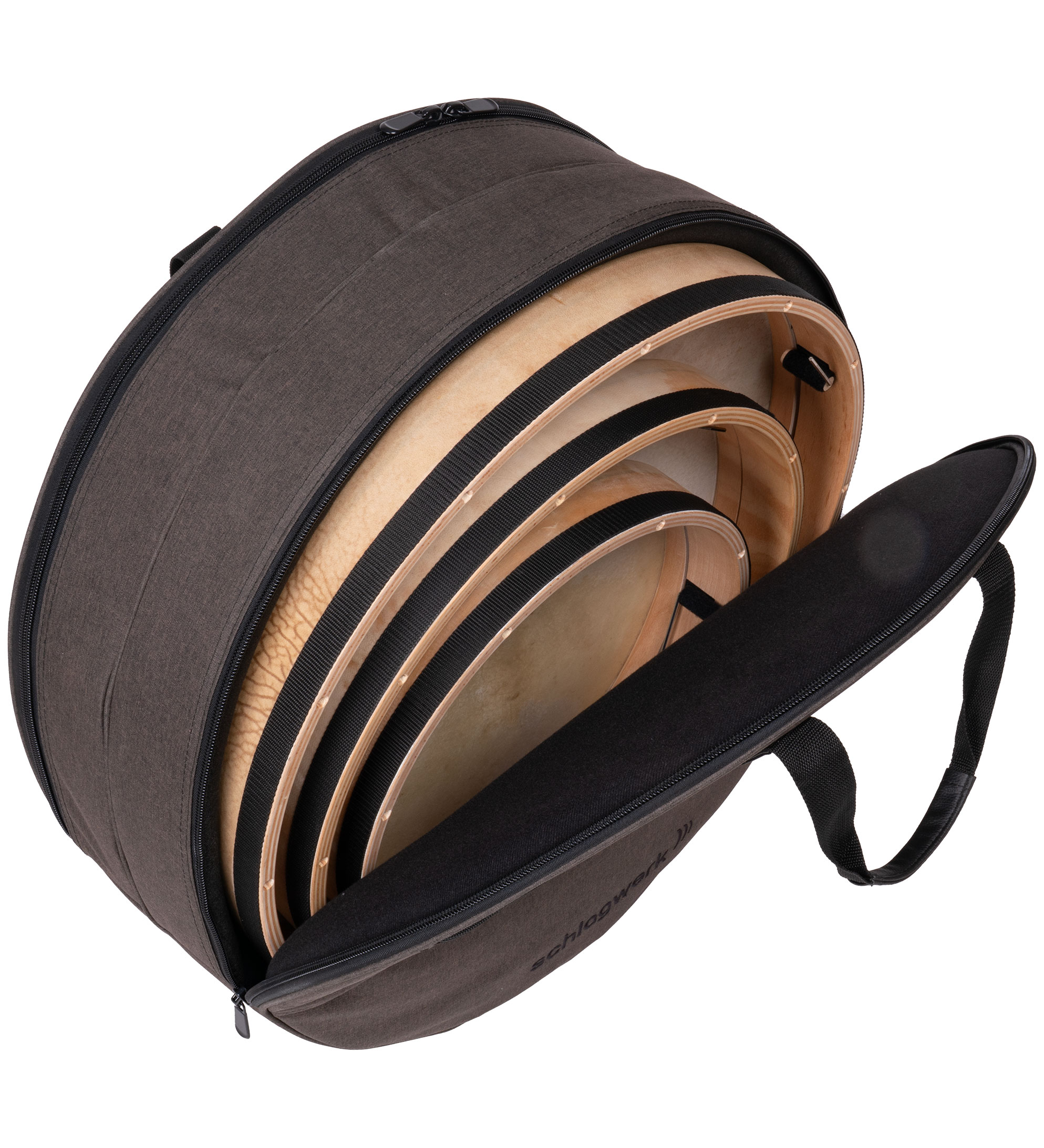 Anyone who needs to transport several frame drums often faces the problem of having to carry multiple bags. To avoid that, we developed the TA6D Frame Drum Bag – it provides space for several frame drums in a compact design, ensuring safe and well-organized transport.