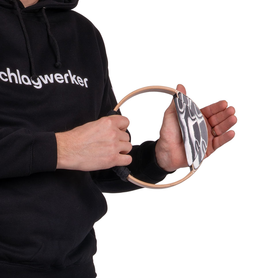 The Velox Shaker is an innovative percussion instrument that immediately catches the eye with its unusual circular shape. Not only does it resemble a bell ring or tambourine in appearance, but also in the way it is played—yet its sound opens up a whole new world.